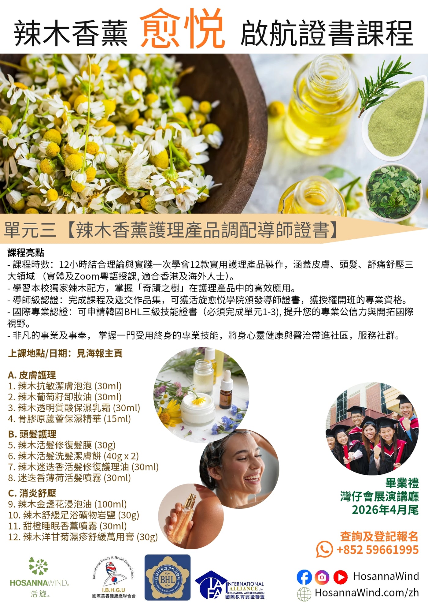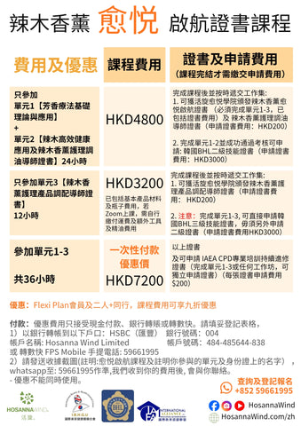1. You will receive "The Moringa Aromatherapy: A Joyful Voyage Certificate" issued by "HosannaWind Exceeding-Joy Academy".