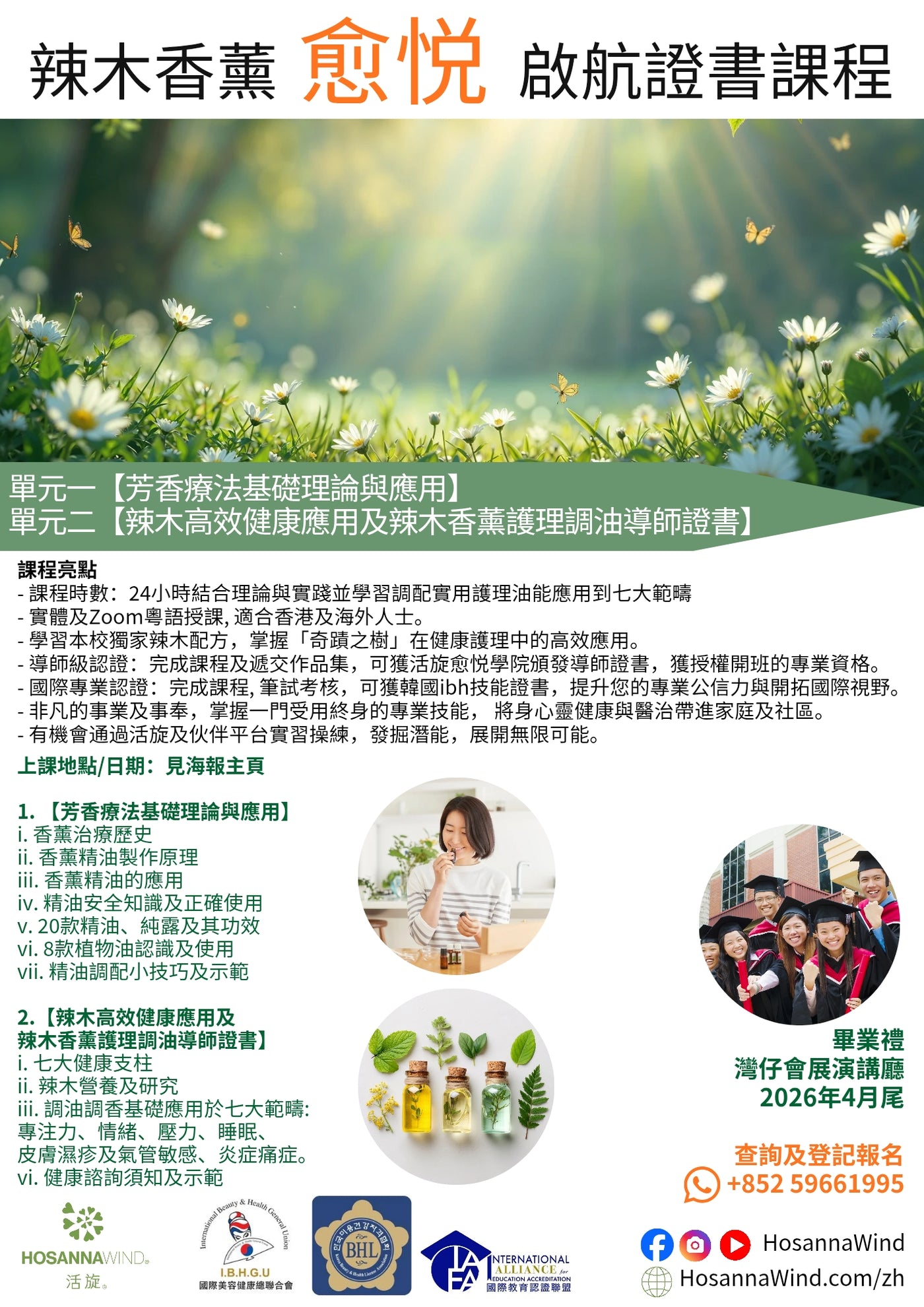 We are dedicated to promoting natural health, environmental concepts, and holistic balance, integrating nutrition and aromatherapy to provide natural health solutions for families, workplaces, and communities. HosannaWind Exceeding-Joy Academy as a part of HosannaWind, we have experienced international professional aromatherapy trainers, perfume blending instructors, and professional nutrition coaches. Our unique Moringa nutrition and aromatherapy training help people achieve harmony and vitality. We design diverse natural health care courses and workshops, addressing the health needs of modern families and laying a solid foundation for the mental and physical health of the next generation. We are eager to listen to your needs, offer professional guidance, and assist more lives towards a healthy, harmonious, and vibrant life. HosannaWind collaborates with health experts to promote the "Tree of Life Health Stations" caring for the community.