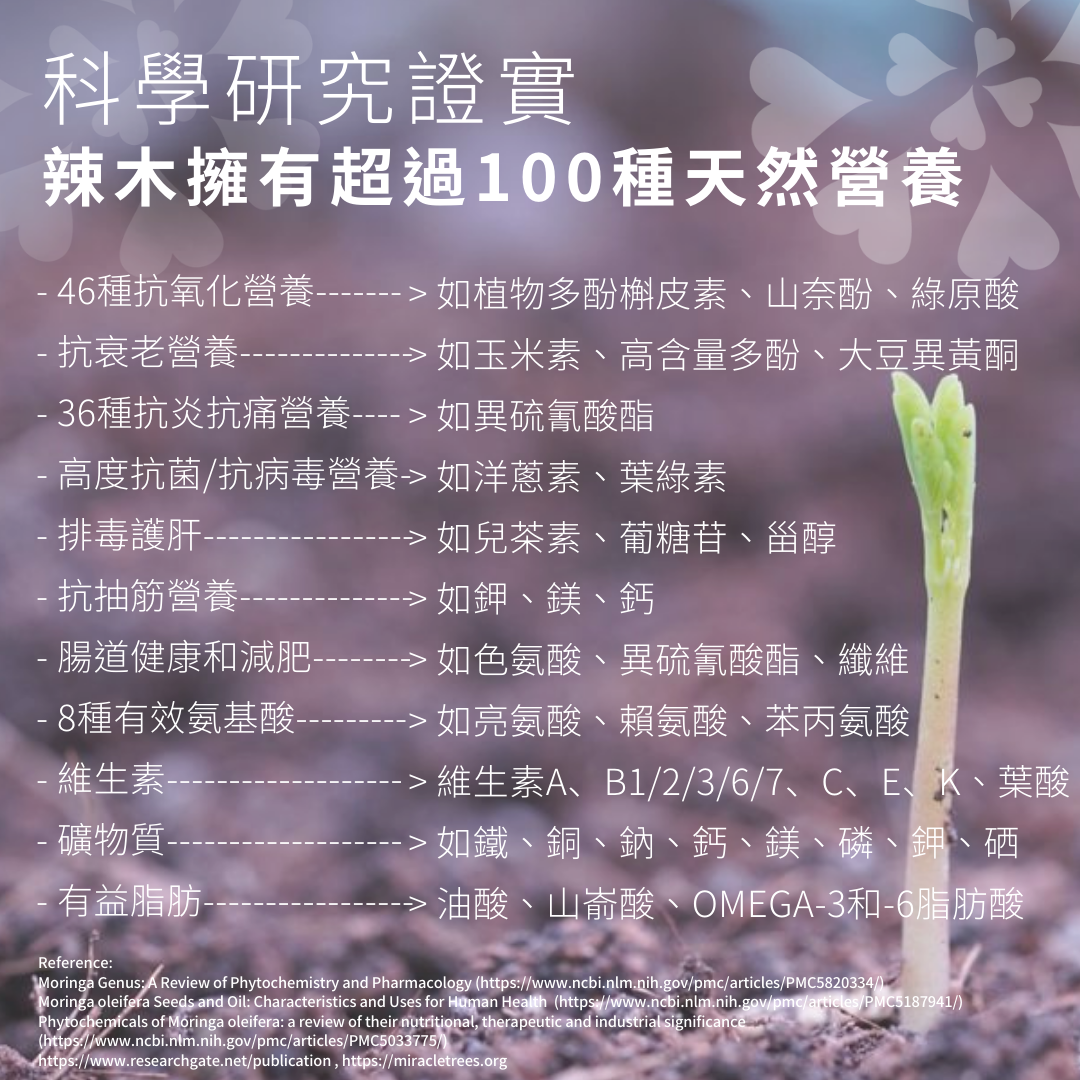 ✓ 辣木含有超過36種抗炎及46種抗氧化成分