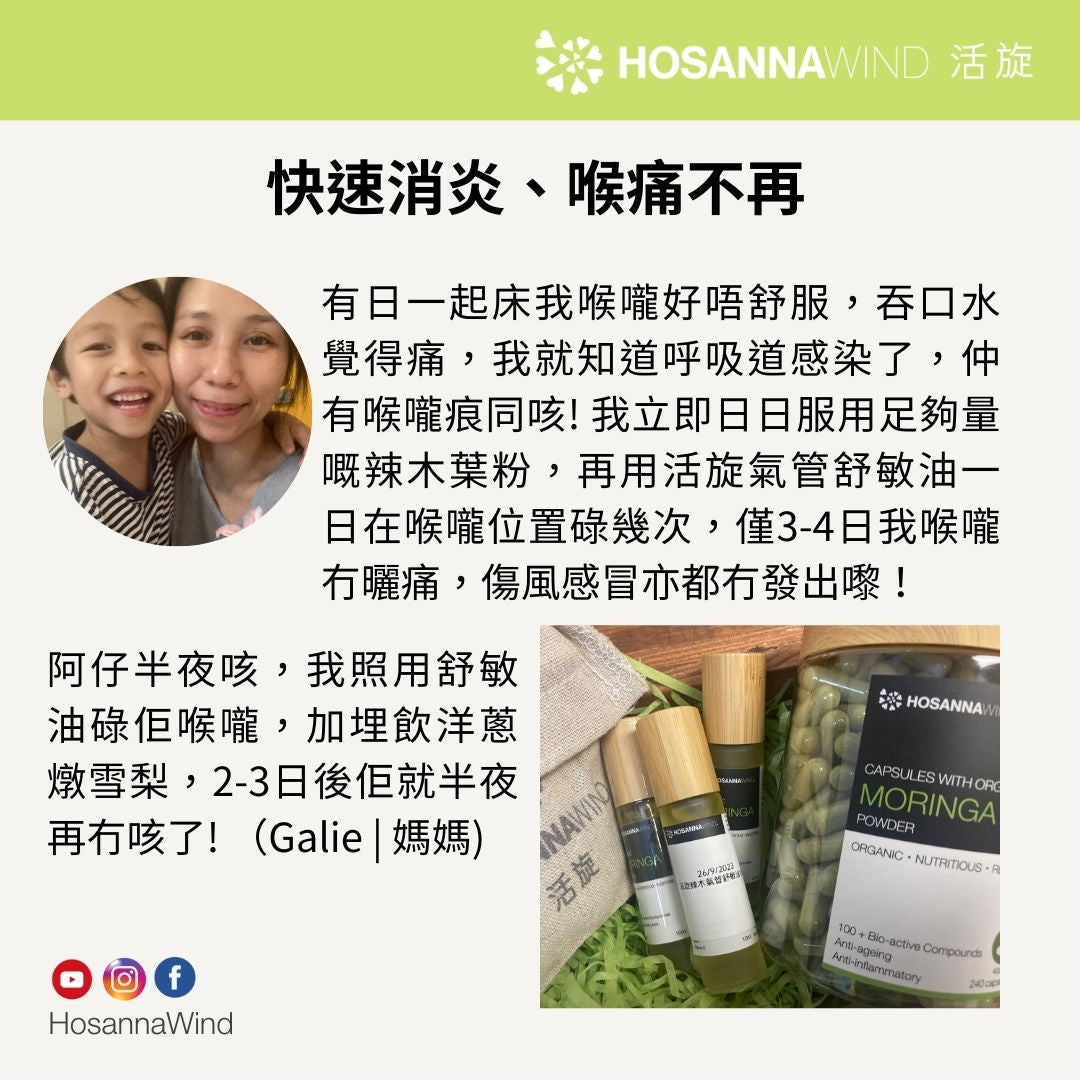 辣木葉粉含有兩種極高抗氧化營養成分:兒茶素和洋蔥素(又名槲皮素),可以抵禦有害物質入侵身體,有效阻止病毒在體內自行複製,及減低病毒在空氣中傳播的機會。兒茶素和洋蔥素能促進肺部健康,增強肺部防禦力,有助修復肺部細胞,紓緩氣管不適及提升肺部免疫力。